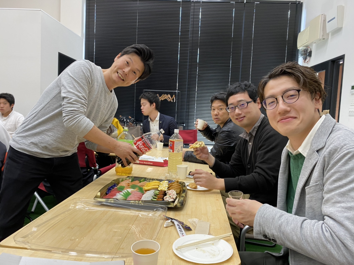 すこし前のことになりますが、昨年末で退職した監督の勝賀瀬くんと設計の和田くんの送別会の様子をお伝えします。