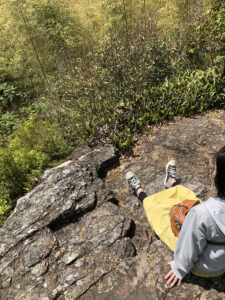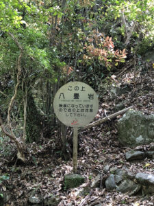 ちなみに、八畳岩の端っこから下を覗き込むと断崖絶壁で非常に怖いです。下腹部がキューとなります。小さいお子さんを連れていくのは危ないので止めておきましょう。