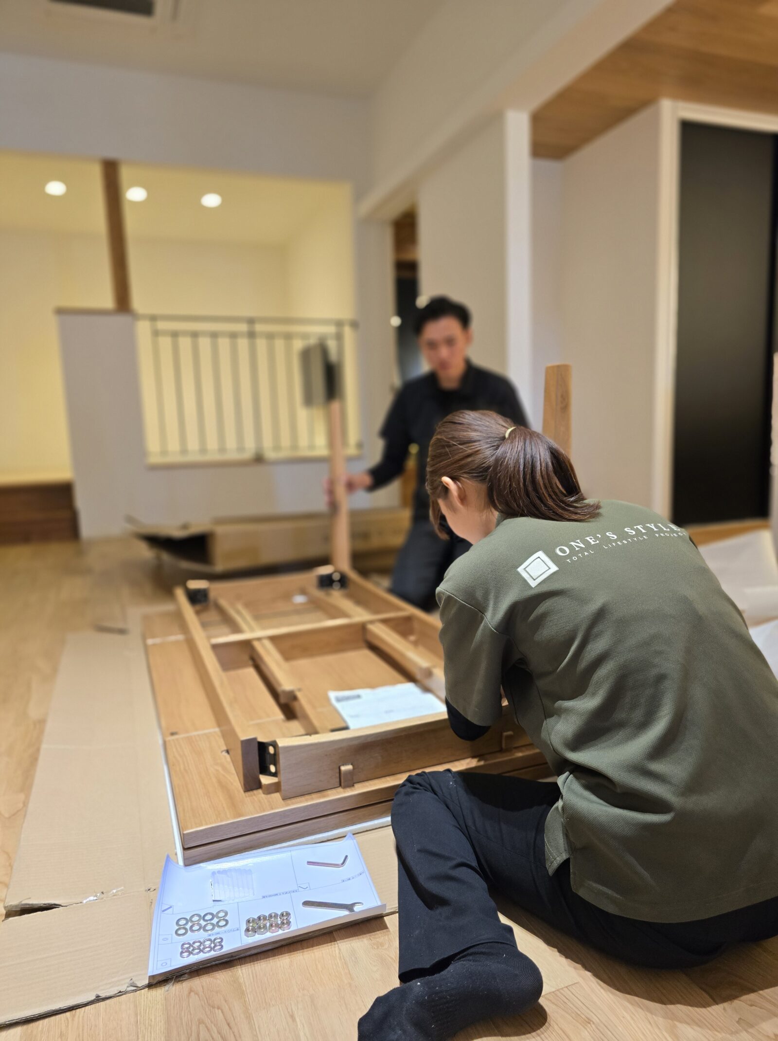 ↓土曜日は工務メンバーが一生懸命家具を組み立てしてくれていました!