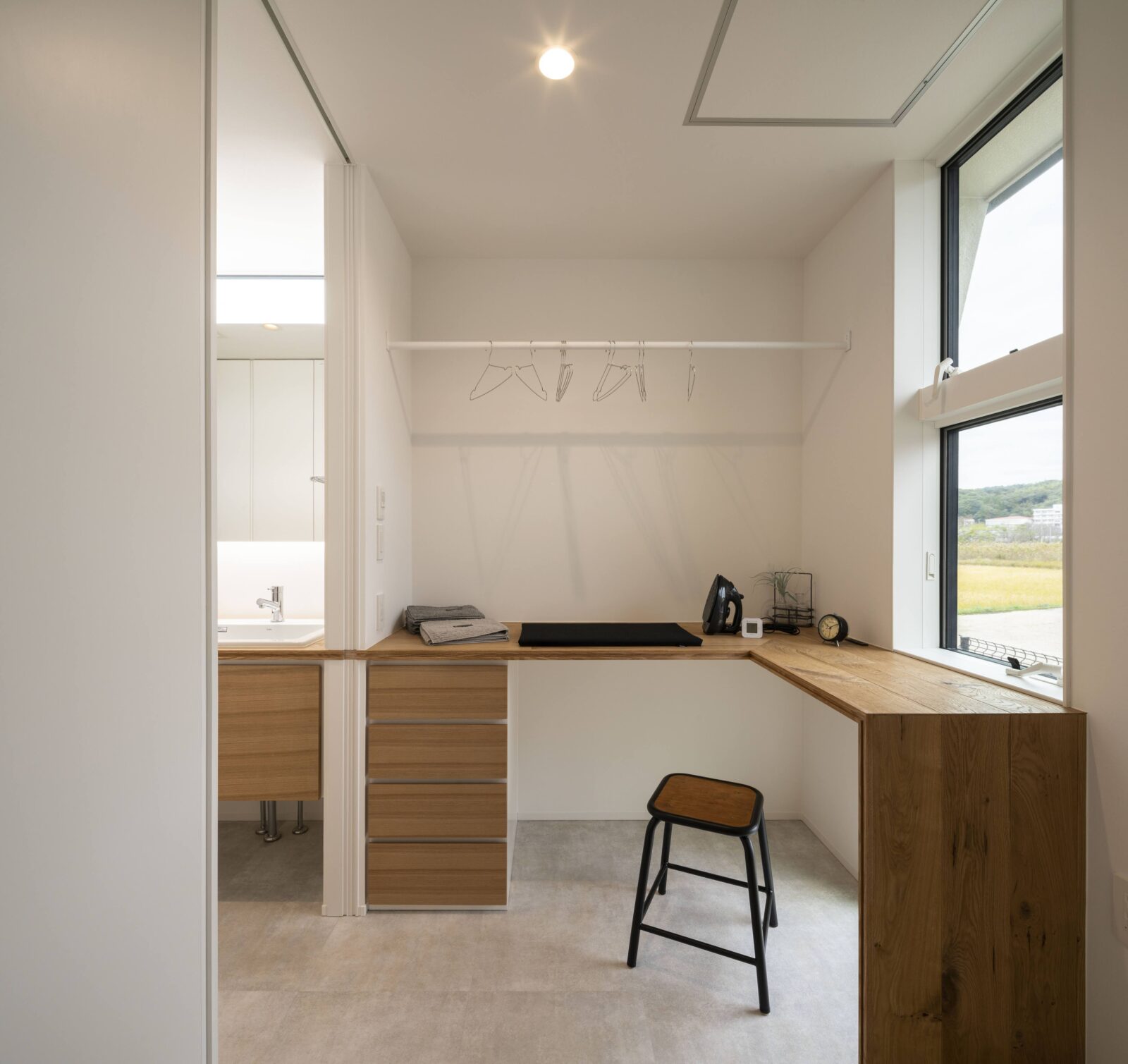 場合によってはランドリールームを設けると、洗濯から収納、アイロンがけまで行えますね!