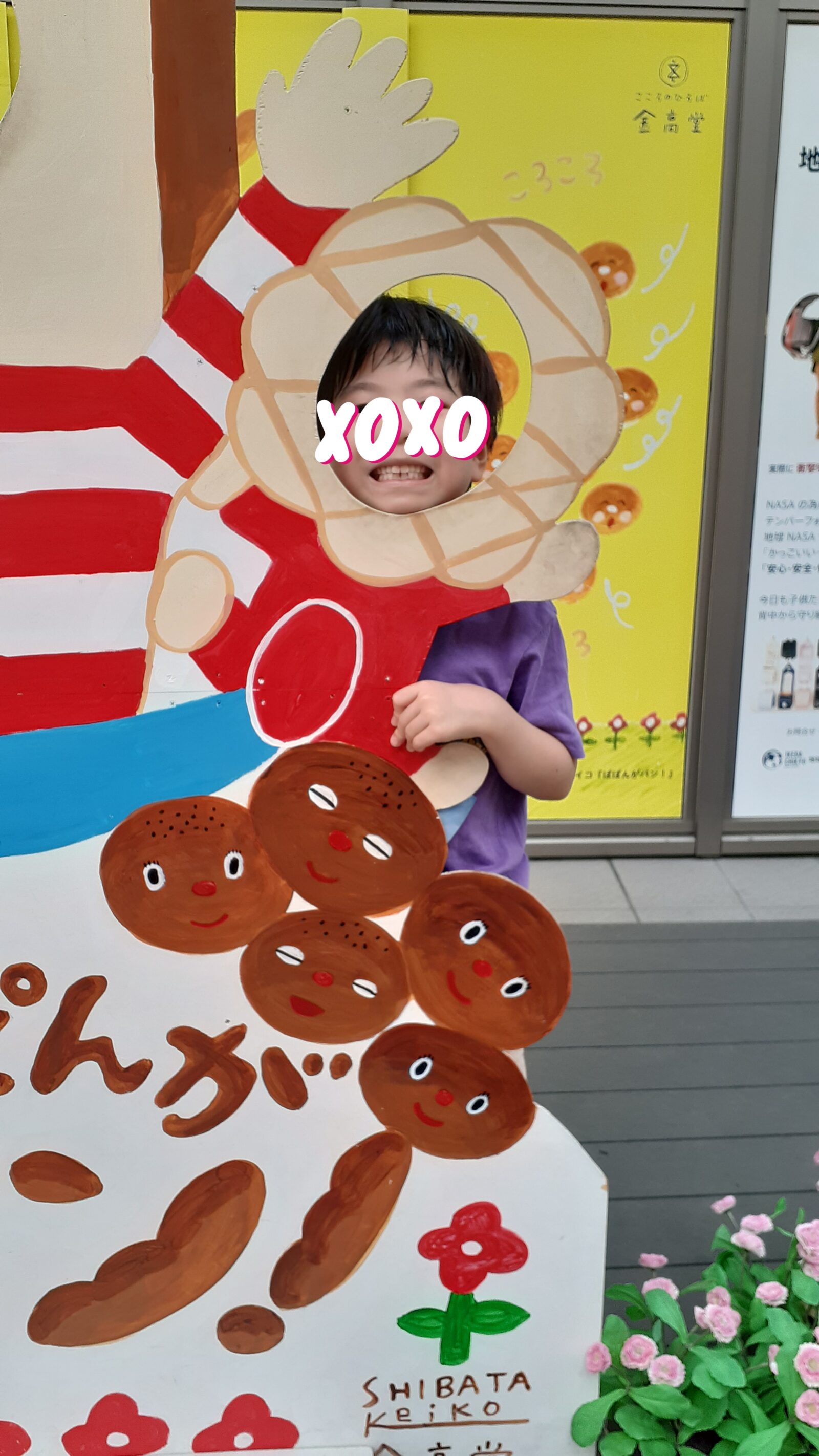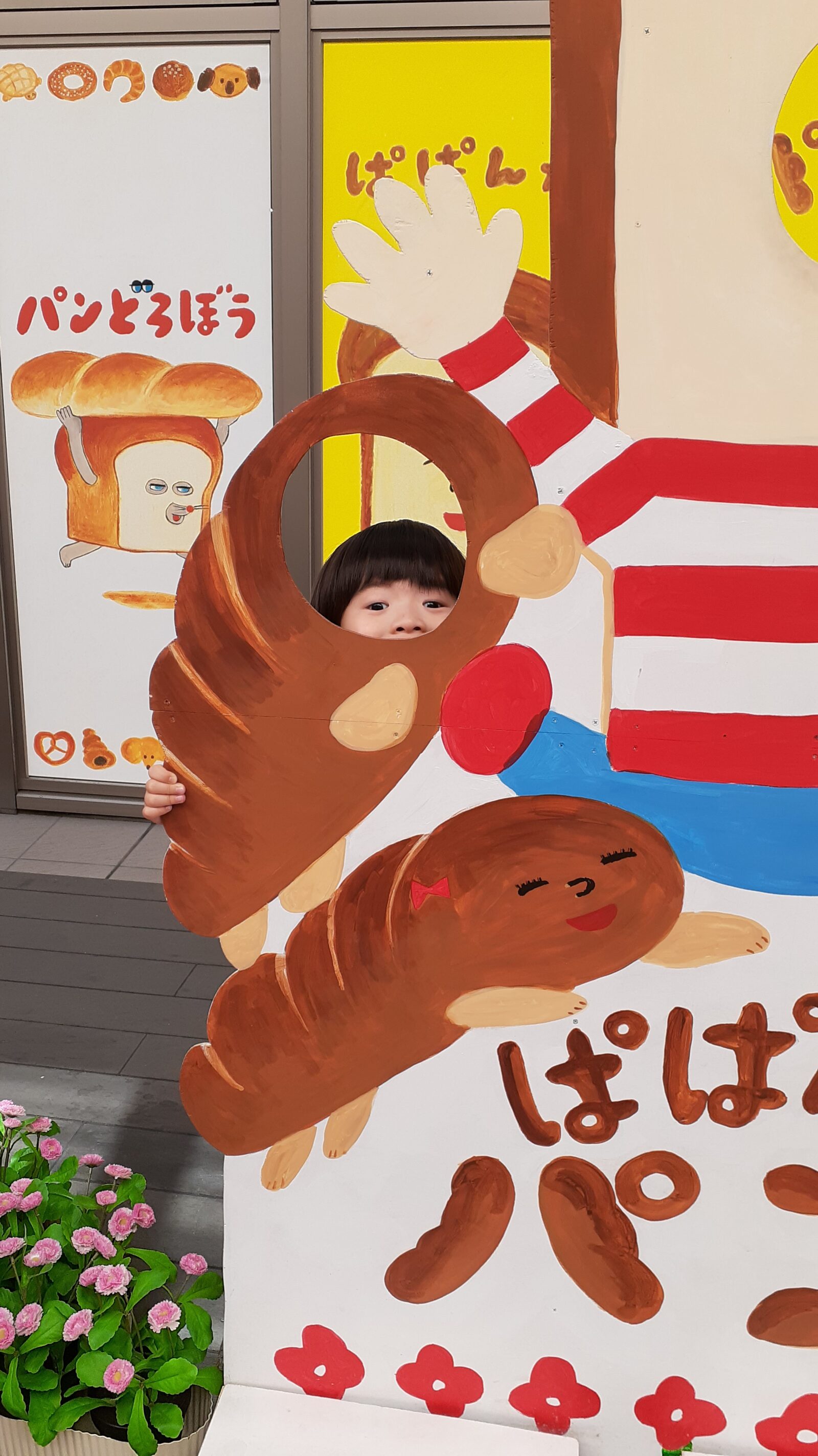 メロンパン側ですが、しっかり顔が出るくらい成長していました。真ん中の食パンに顔が出せるのはあと何年後でしょうか…?それまでこの看板があると良いなと思います。