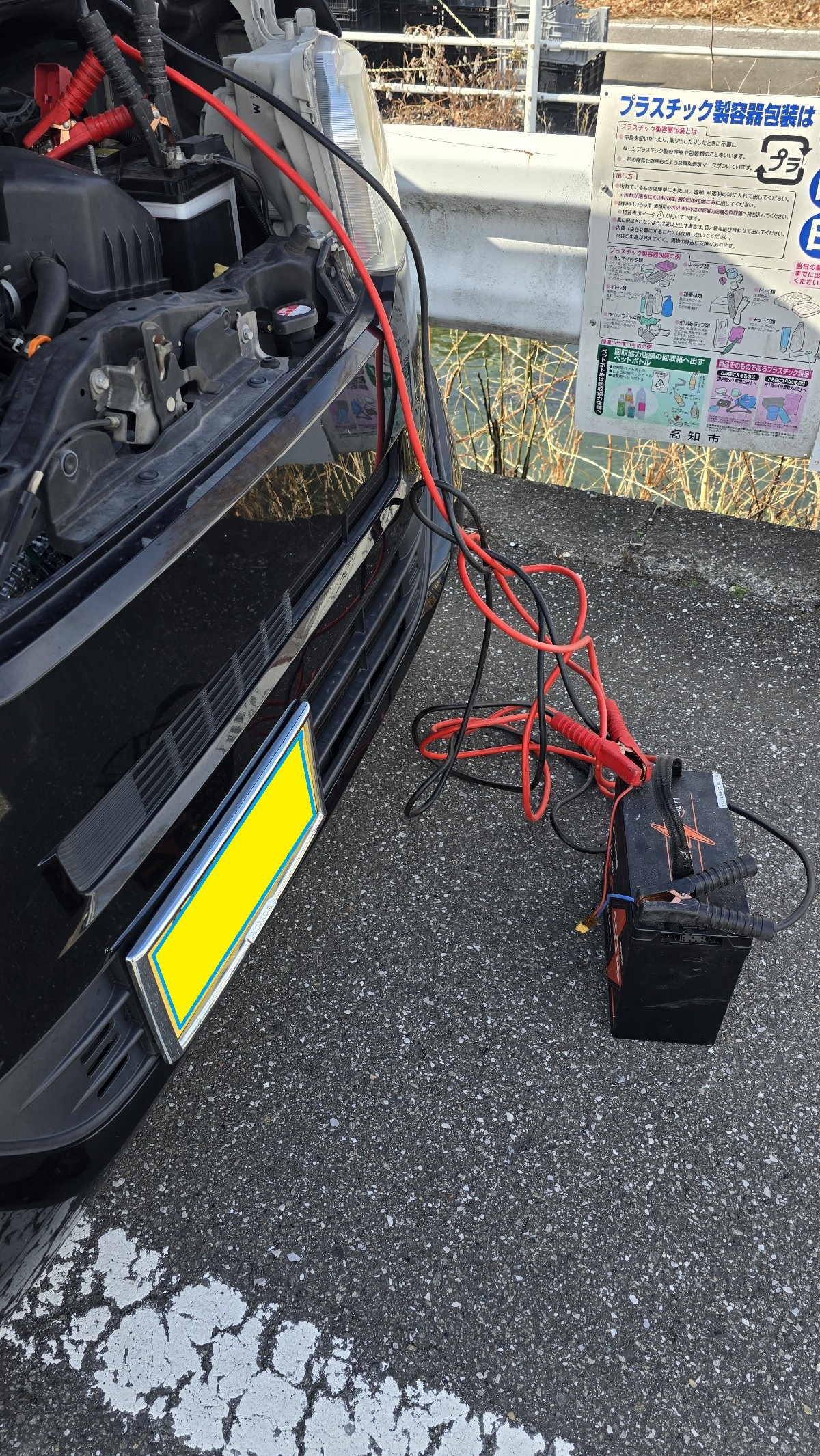 いろいろ悩んだ末、実家が近かったので、父に連絡してバッテリーとケーブルを持ってきてもらいました(笑)