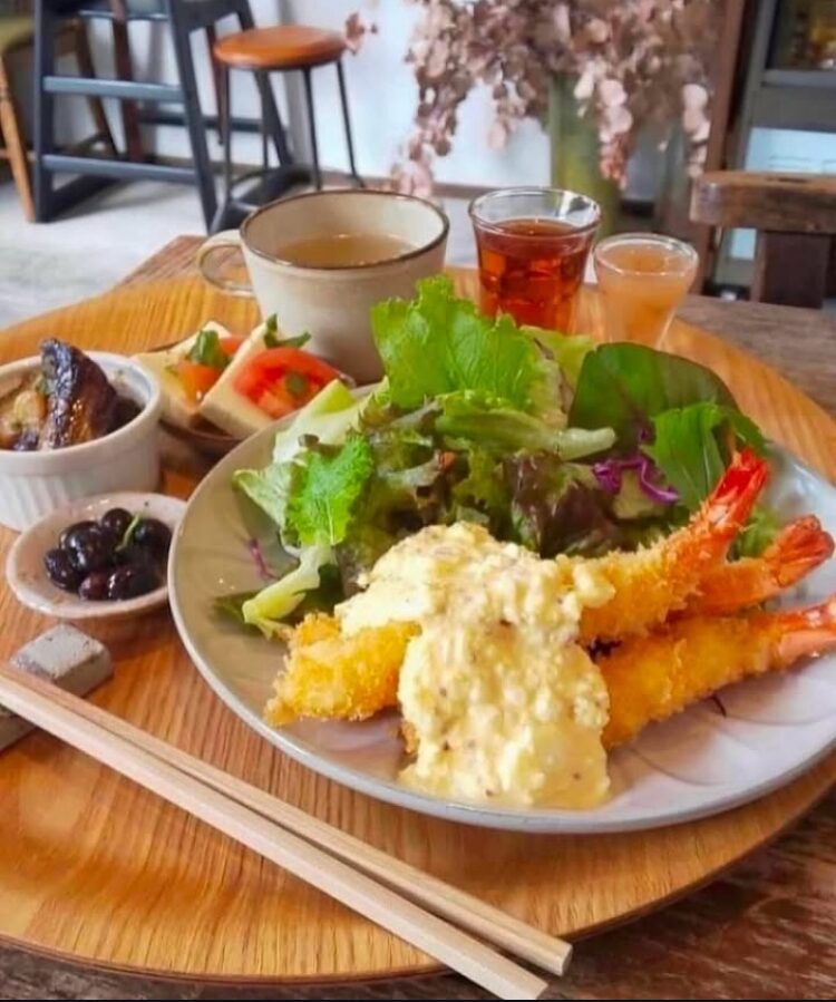 ぷりっぷりのエビの周りにはサクサクの衣が…。とっても美味しいランチですので是非食べに来てください!