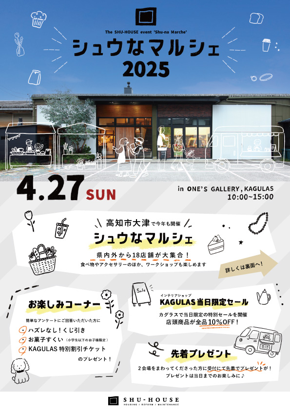 さてシュウハウスでは、ご存知の方も多いかと思われますが、4月27日(日)に 『シュウなマルシェ』を開催いたします!