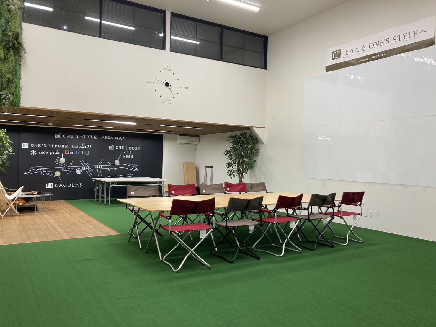 連日盛況のカフェやスッタフが会議や打ち合わせなどで使用している場所が開催場所になるということは、テーブルやイスなどは片付けられイベント仕様の状態に変わります!