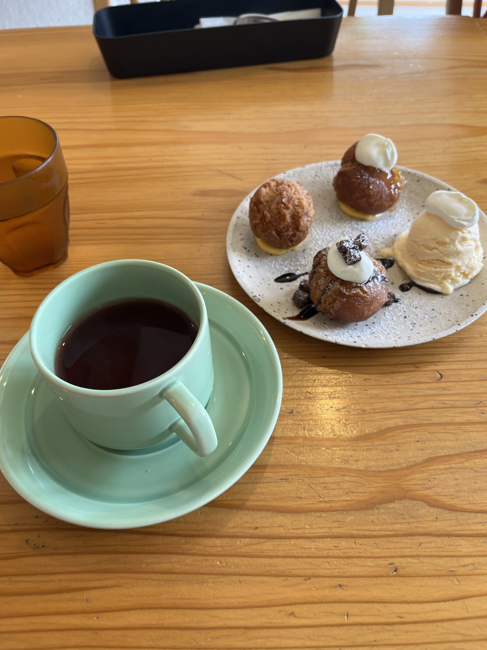 かわいいサンダーアンダーギーのアイス添えとハイビスカスのお茶をホットで飲みました。酸味があり美容にいい感じでした。スッキリさっぱりして美味しかったです。
