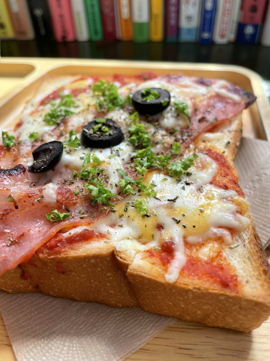 ピザトーストを注文しましたが、ベーコンの上のオリーブが良いアクセントでペロリと平らげてしまいました。