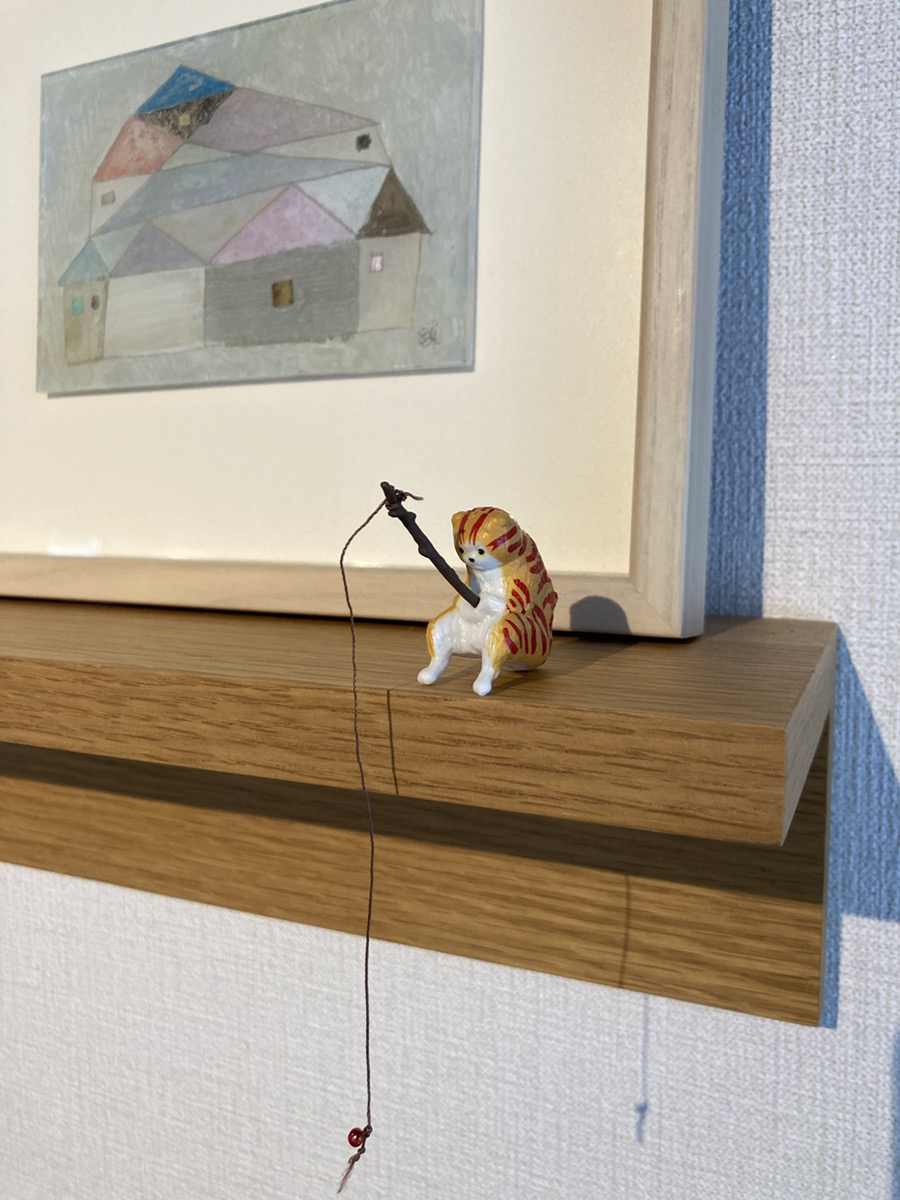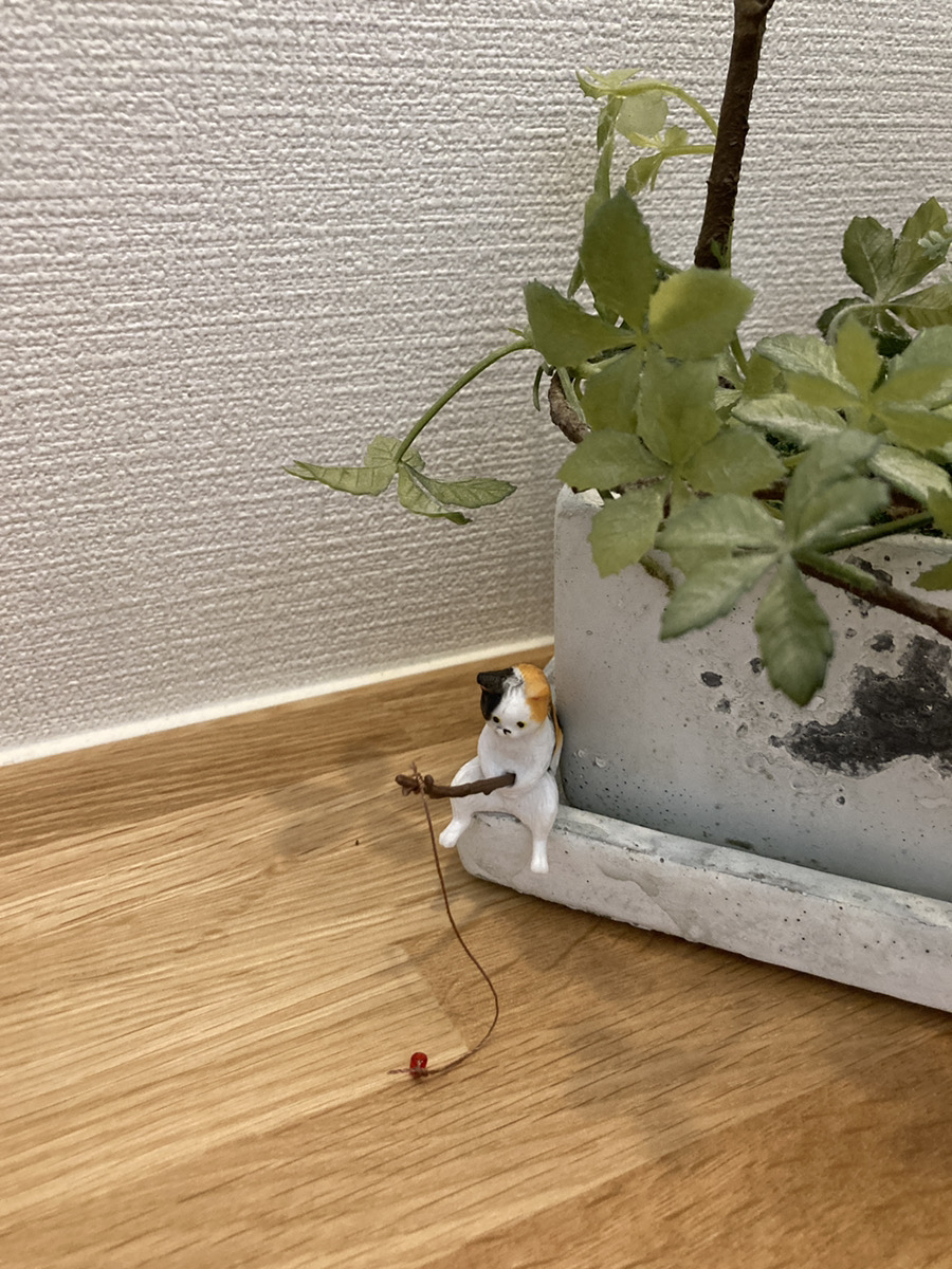 ネコの置きモノ?オブジェ?なぜ釣り?