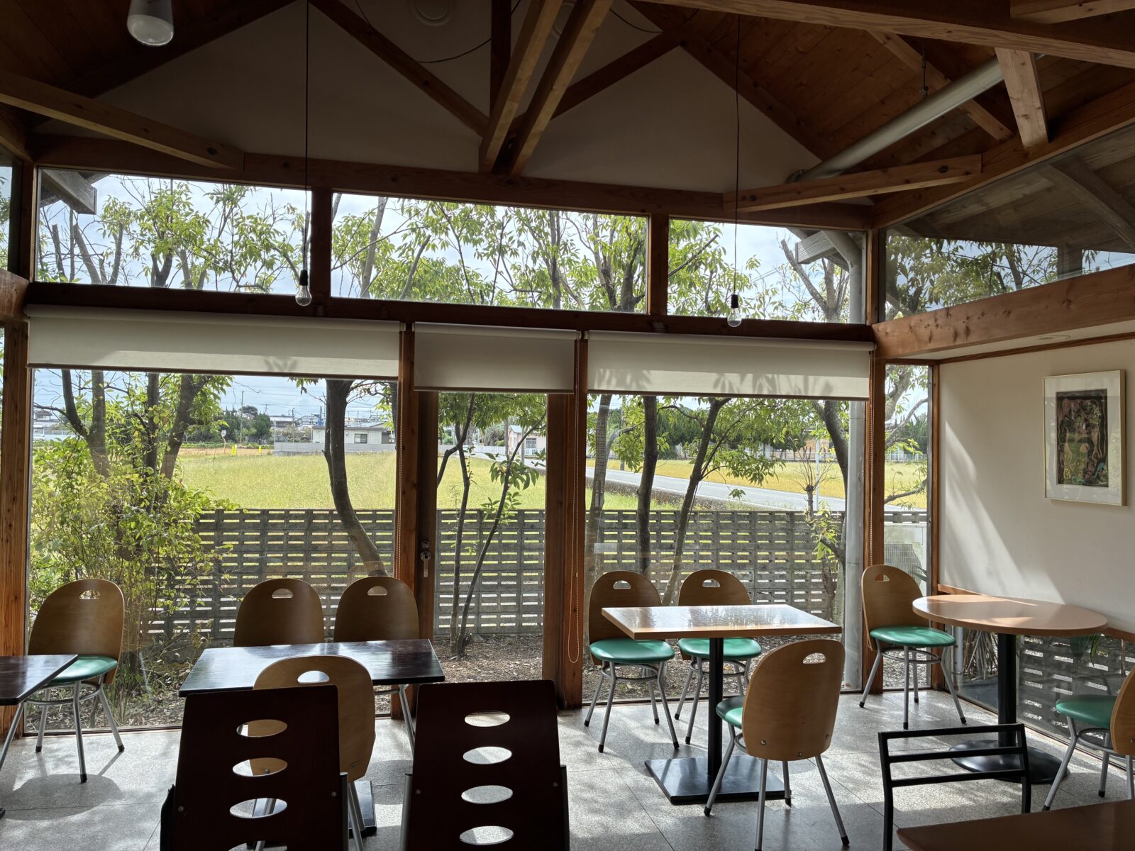 天井付近まである窓で、のどかな風景をどこに座っても眺められる素敵な店内となっていました..。o