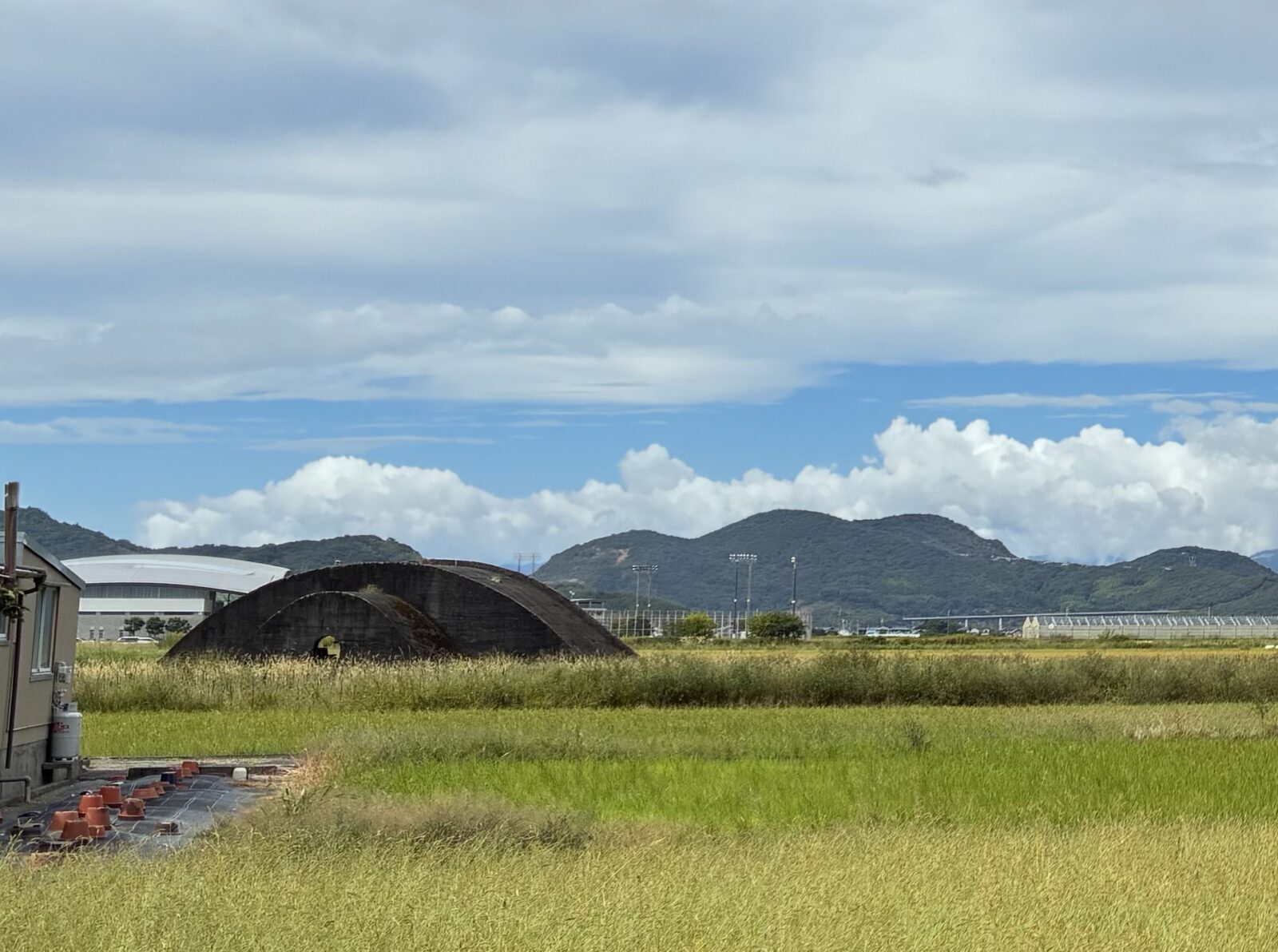 店内を出ると、目も前にはのどかな風景と共に、はじめにご紹介した「掩体」の後ろ姿がありました。