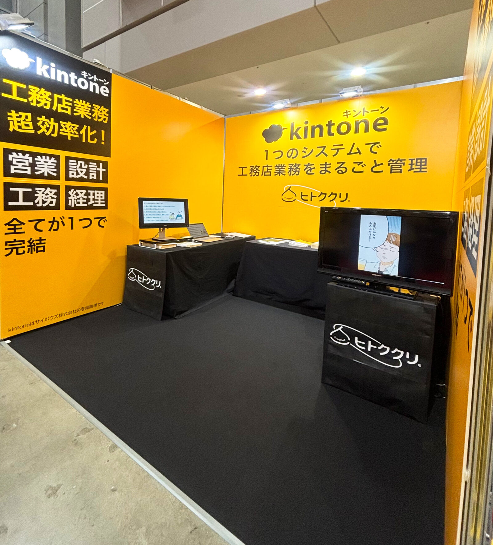 私たちは工務店業務が1つで完結する、それはもう素晴らしいシステム「ヒトククリ」を全国の皆様に広めるために出展しました!