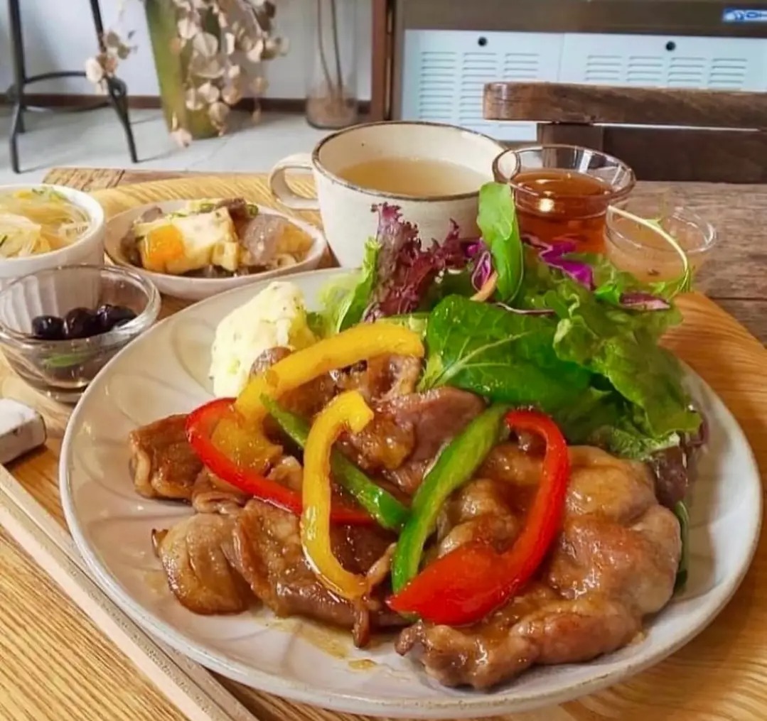 さて、カフェ・リアンの今週のまごこわランチのメニューは「四万十ポークの甘辛プレート」です。