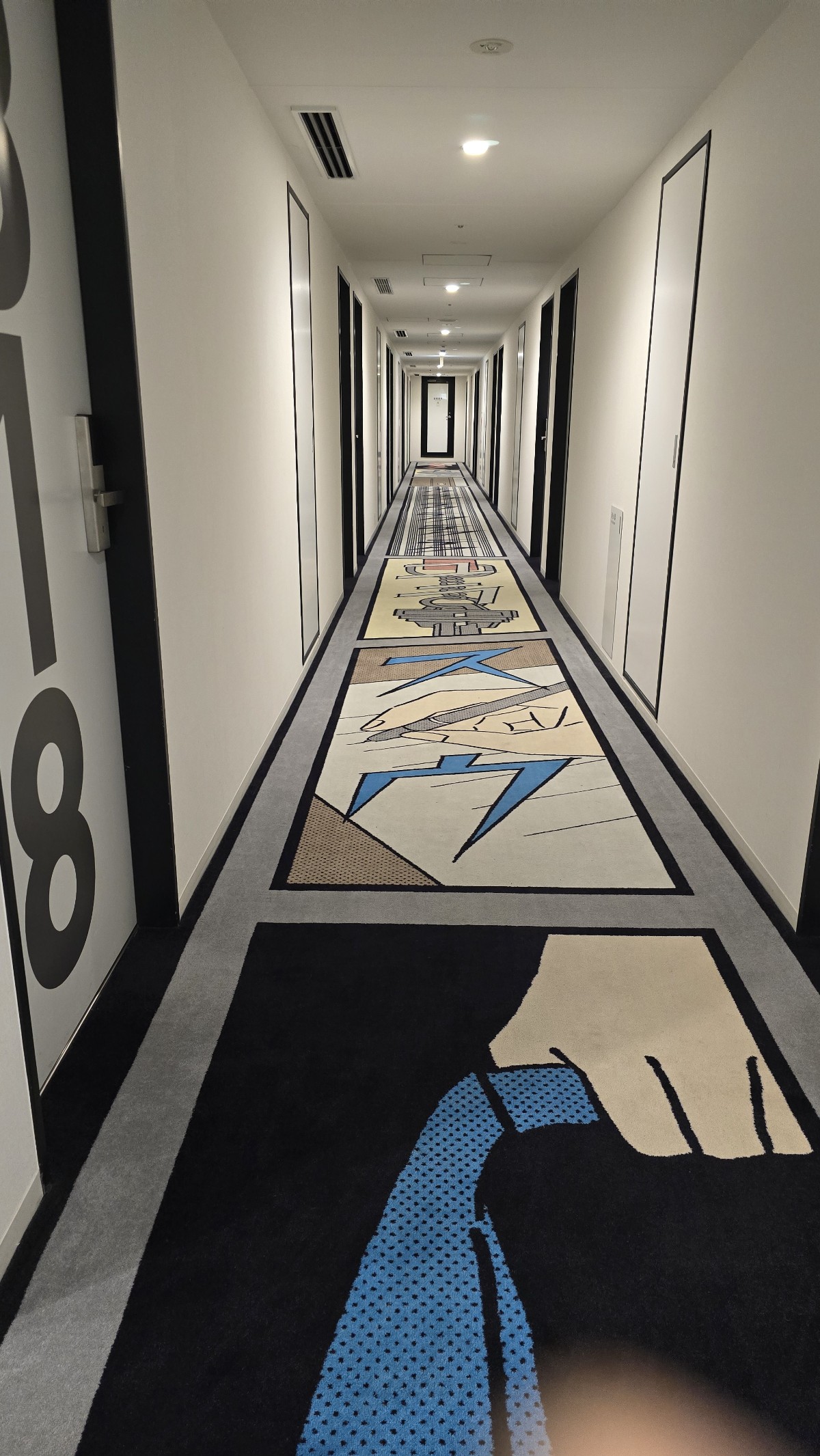 廊下は↓こんな風に漫画?イラスト?が。ちょっと面白いです。部屋のドアにもめいっぱい大きく部屋番号が書かれててわかりやすい(笑)