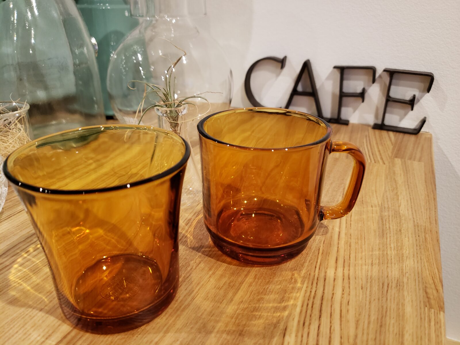つづいてはレトロなマグカップ。アンバー色のレトロなカップはとても丈夫で、今でも愛用しています♪