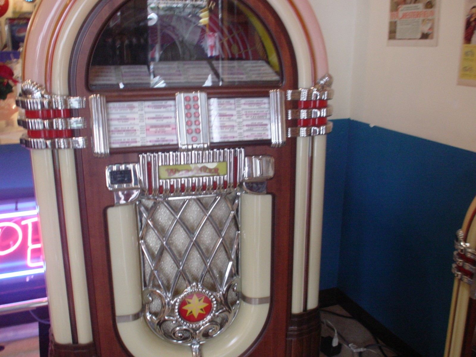 本物のジュークボックスもあってテンション上がってました♪このころジュークボックスが欲しくて欲しくて。・・・買いませんでしたが💦可愛くないですか?