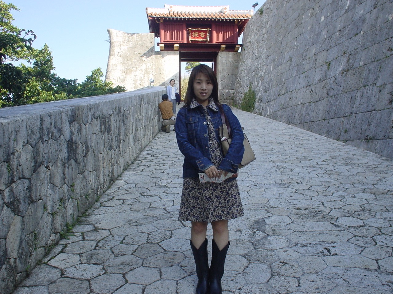 最後は首里城での写真。このころは古着やウェスタンブーツも好きで、このワンピースは古着なのですが、めっちゃ可愛くて気に入ってよく着ていました!