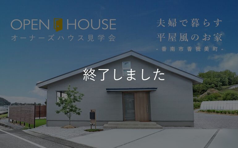 【終了】「 夫婦で暮らす平屋のお家 」香南市香我美町オーナーズハウス見学会 7/7(日)