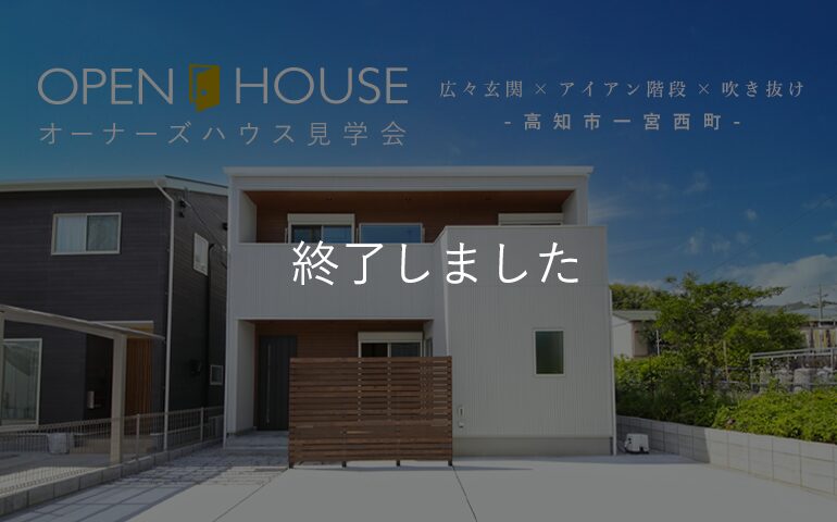 【終了】「 広々玄関 × アイアン階段 × 吹き抜け 」高知市一宮西町オーナーズハウス見学会 8/31(土)