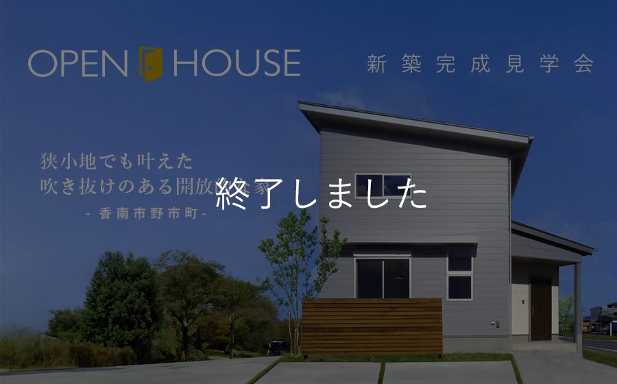 ご来場予約をする 狭小地でも叶えた吹き抜けのある開放的な家 ご家族の想いの詰まったお家が、香南市野市町に完成しました。 今回のお家のみどころポイントは 狭小地でありながらも、弊社の豊富な経験と知識で広々とした空間を実現。 … 続きを読む 【終了】「 狭小地でも叶えた吹き抜けのある開放的な家 」香南市野市町新築完成見学会 1/25(土)・26(日)・2/1(土)・2(日)