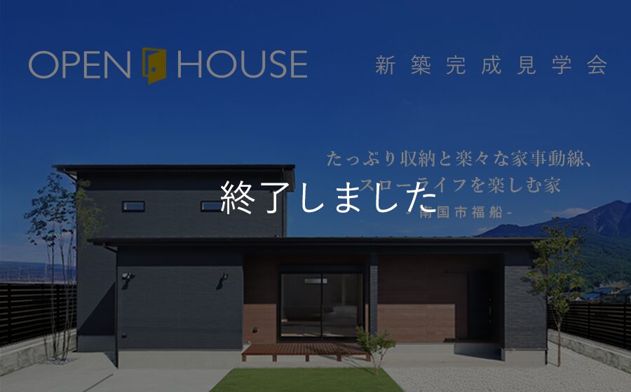 【終了】「 たっぷり収納と楽々な家事動線、スローライフを楽しむ家 」南国市福船新築完成見学会 2/22(土)〜3/2(日)