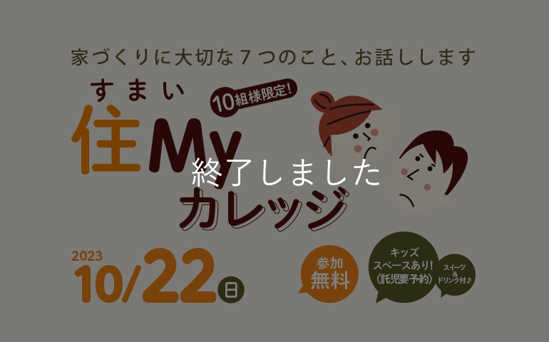 【終了】住Myカレッジ 〜家づくりに大切な7つのこと〜《無料セミナー》 10/22(日)