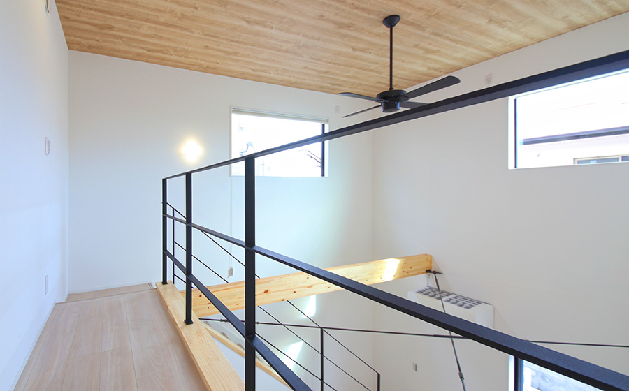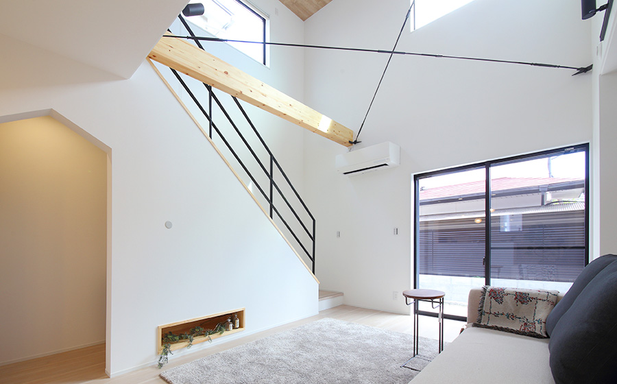 開放感たっぷりの吹き抜けにアイアン手すりの階段がアクセントのリビングや、おしゃれな造作洗面台など、こだわりの詰まったお住まいです。