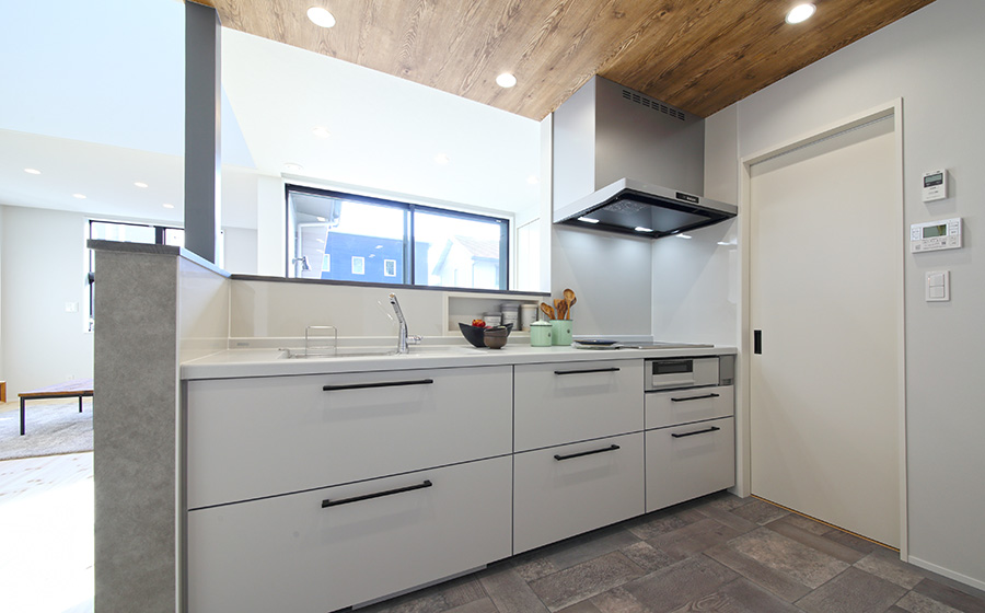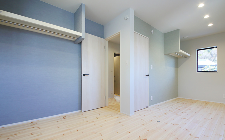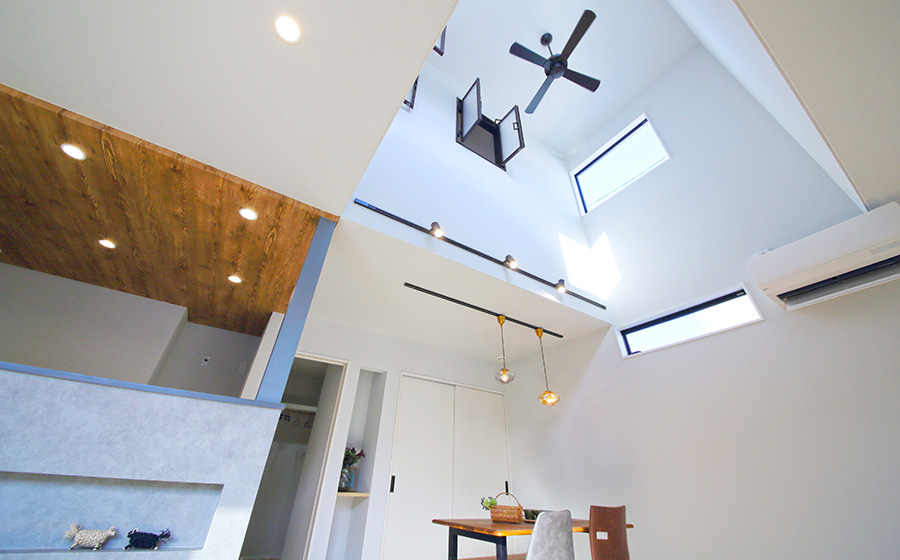 キッチンやウォークインクローゼット、洗面所それぞれを近い位置に設置し、洗面所・脱衣室・浴室が直線に並んだ家事のしやすい動線に。2階にある寝室や子ども部屋には、リビングにある吹抜けと繋がる内窓を設け、いつでもご家族とコミュニケーションがとれます。