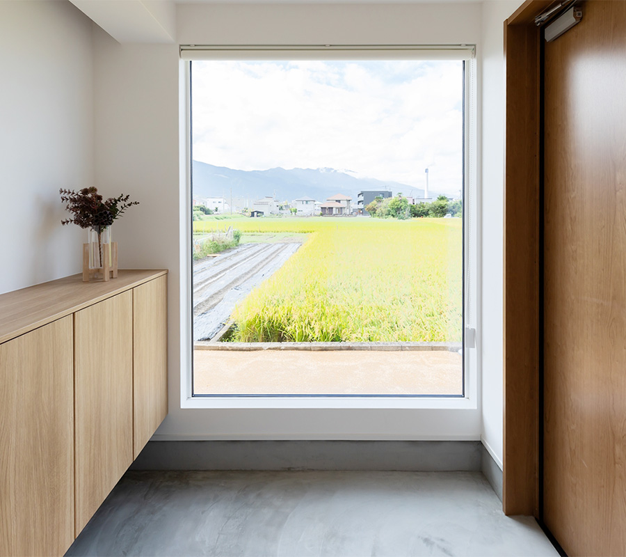 田園風景をまさに絵画のように取り込める玄関のピクチャーウィンドウや、