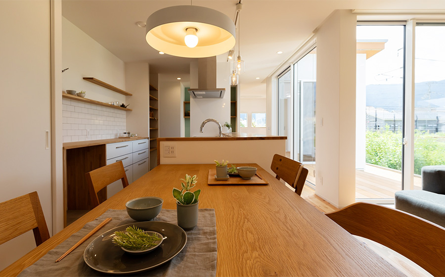 冬場は日差しを取り込んで暖かく、夏場はしっかりさえぎって涼しく過ごしていただけるように計画しました。