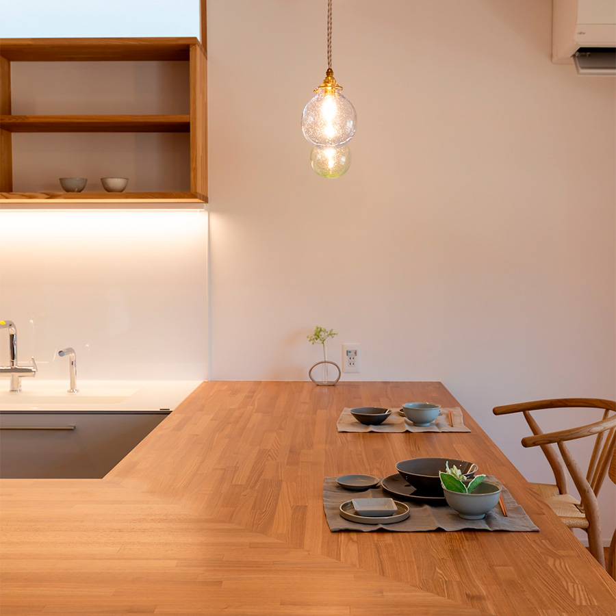カッコイイネイビーの外壁や、ご夫婦の「これは絶対!」というご要望をお伺いしながら、1年中快適に過ごせるお家を考えました。光の入り方や風の通り方を考えて、大きな窓を設置しました。LDKからお庭が見え、開放感があります。奥行きのある細長い土地を生かしたパッシブデザインの平屋のお家です。